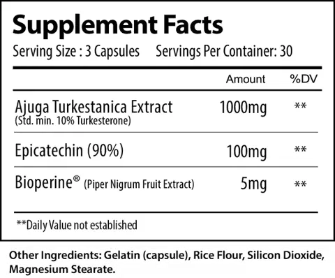 Ajuga Turkestanica Extract (10% Turkesterone): A natural compound believed to enhance muscle growth, recovery, and overall performance.