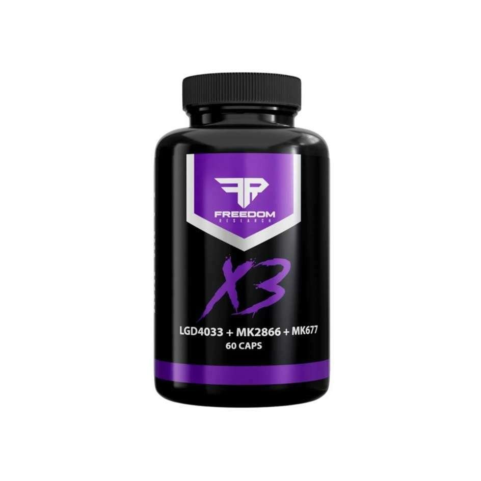 Freedom Formulations X-3 60 capsules stack is a potent SARM blend designed to support those on their fitness journey in achieving significant muscle gains, improved recovery, and fat loss. Combining MK-677, LGD-4033, and Ostarine, this stack is perfect for both bulking and cutting phases.
