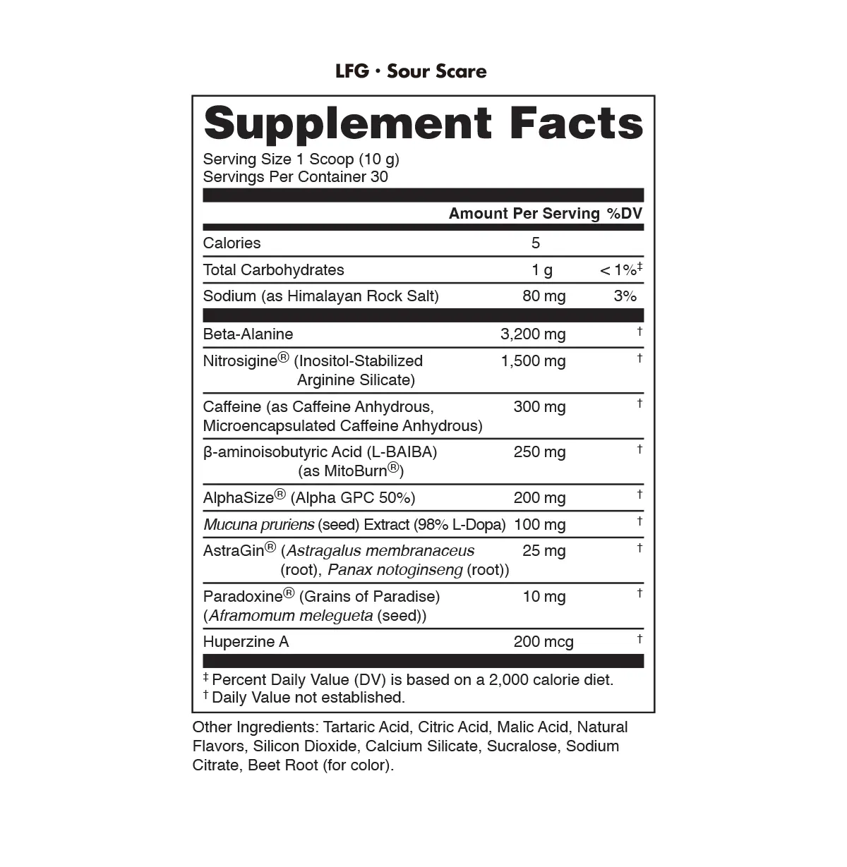 LFG’s Sour Scare flavor is a tangy, spine-chilling experience that shocks your system with relentless energy and focus.* This pre-workout is for those who love the taste of danger and aren’t afraid to push their limits. Packed with pump-inducing ingredients, Sour Scare will have you dominating your workout with a power that will leave others running scared. Sour never tasted so strong.
