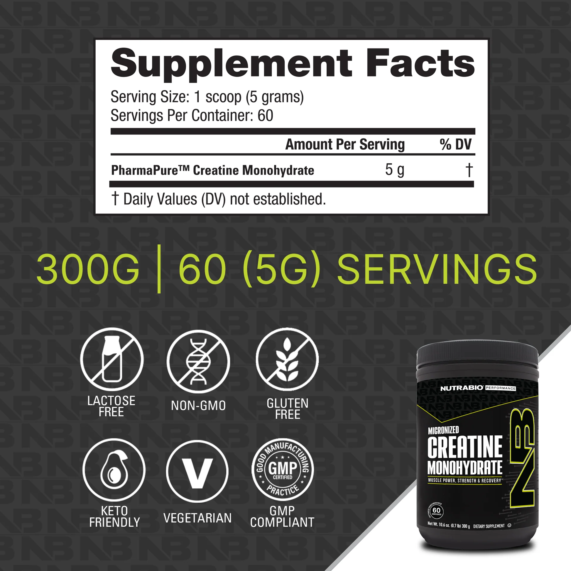 NutraBio Creatine Monohydrate Powder (100 Serving)