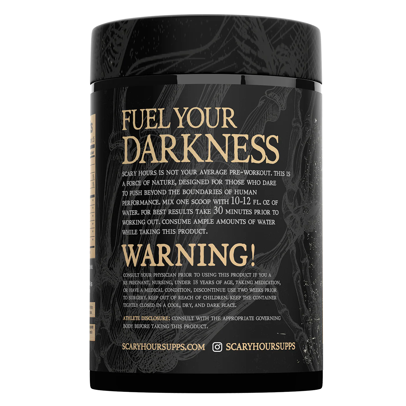 Scary hours is not your average pre-workout. this is a force of nature, designed for those who dare to push beyond the boundaries of human performance. mix one scoop with 10-12 fl. oz of water. for best results take 30 minutes prior to working out. consume ample amounts of water while taking this product.